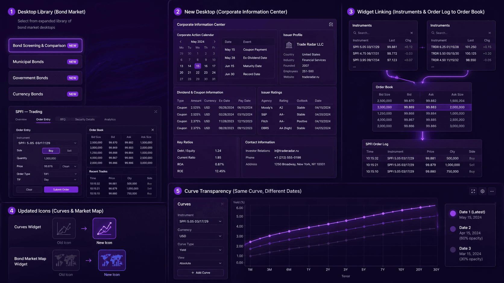 В Журнале ордеров СПФИ появились адресные и безадресные, шаблонные сделки XCCY, стакан по ордерам XCCY и автоподстановка цены из стакана. На Карте облигаций появилось отображение фильтров по отраслям и 4 новых показателя доходности, включая G‑spread.»