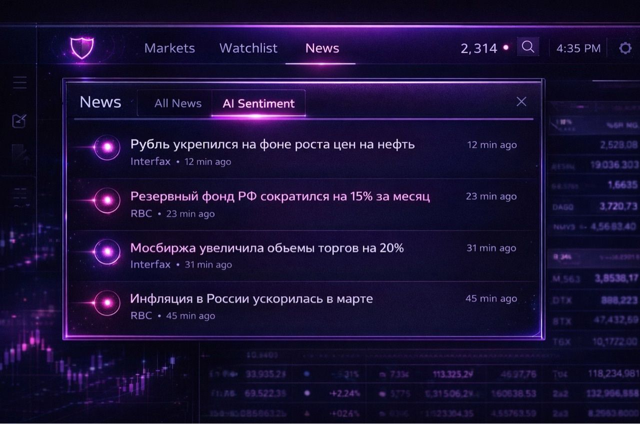 - Возможность настройки событий по: отраслям, эмитентам, инструментам.